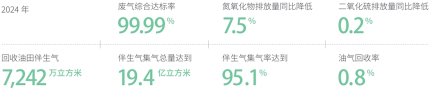 中国石化印发《中国石化落实空气质量持续改善行动实施方案》,明确大气污染物减排目标与治理重点任务。京津冀等重点地区企业高质量完成重点时段空气质量保障任务,京津冀及周边、汾渭平原地区企业认真做好秋冬季大气污染防治工作。开展环境监测质量评估与督查工作,完成油气田、炼化企业全覆盖评估与督查。推广油气集输处理密闭工艺,实施井口密闭生产、站点密闭输送、配套完善集输管网、单井拉油改管输、油井伴生气发电、零散井伴生气回收等措施,实现油田伴生气应收尽收。
