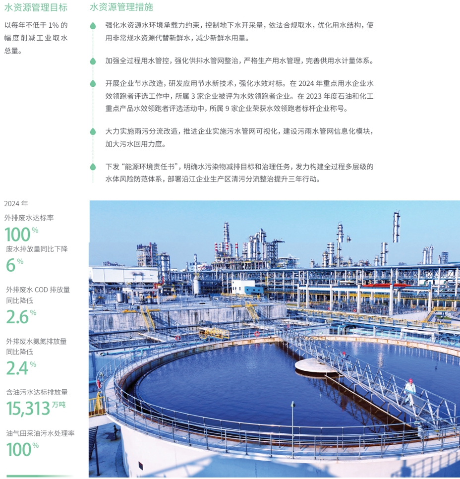 2024年,中国石化严格落实《危险废物贮存污染控制标准》《危险废物识别标志设置技术规范》等新标准规范要求,规范生产现场危险废物管理,分类收集,定点存储,合规处置,强化全生命周期环保管理。