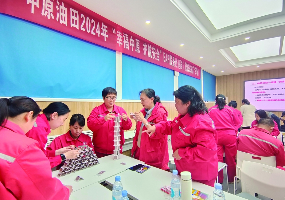 中国石化举办基层思想政治工作培训班、员工帮助计划(EAP)骨干培训班,将员工EAP工作融入HSE管理体系和企业文化建设。用好“奋进石化”平台“心福咨询”模块,持续开通7*24小时境内外员工心理咨询专线,开展网上EAP云课堂、编发“心理小贴士”和“心福推文”等,科学及时普及心理学知识。开展“幸福快车”一线行活动,做好包括专家授课、专题团辅、“幸福加能站”活动、“一对一”心理咨询、危机干预和健康管理等6大类服务,为不同层级员工提供“心”动力。举办“向幸福出发——感恩相伴,其乐融融”EAP讲座活动,组织公司境外项目员工思想动态调研。