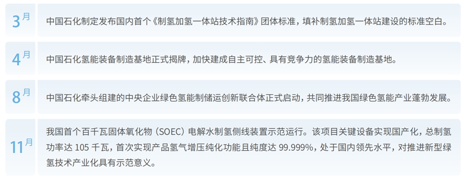 中国石化按照“科技支撑、产业引领、融通带动、开放合作”的总体思路,积极推进氢能应用现代产业链建设。在基础工作方面,开展氢能产业布局研究,积极推进氢能应用现代产业链数据平台建设,成功举办氢能应用现代产业链高质量发展推进会暨专家咨询委员会成立大会等多场产业高峰论坛。在合资合作方面,与多个省(区、市)、企业、高校签订氢能合作相关协议,协助多地政府编制氢能产业发展规划,与国外多家能源企业就氢能产业开展深化互利合作。在推动国产化应用方面,通过新疆库车、内蒙古鄂尔多斯等大型绿电制绿氢项目及加氢站等基础设施建设,实现相关装备制造关键技术突破。