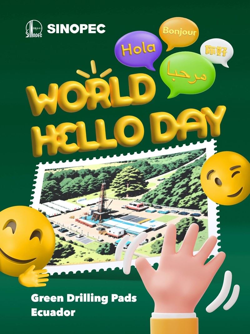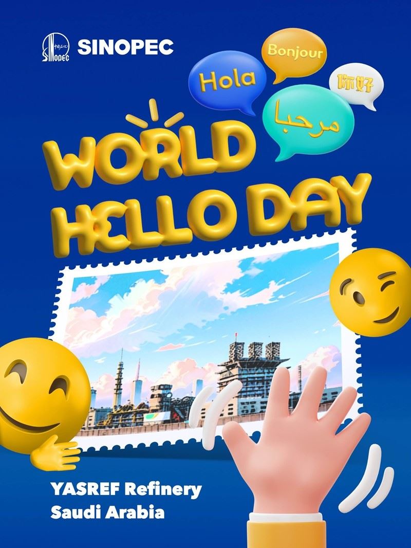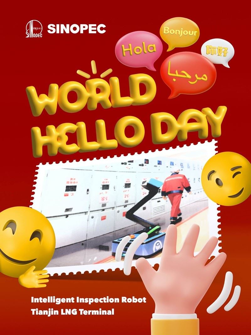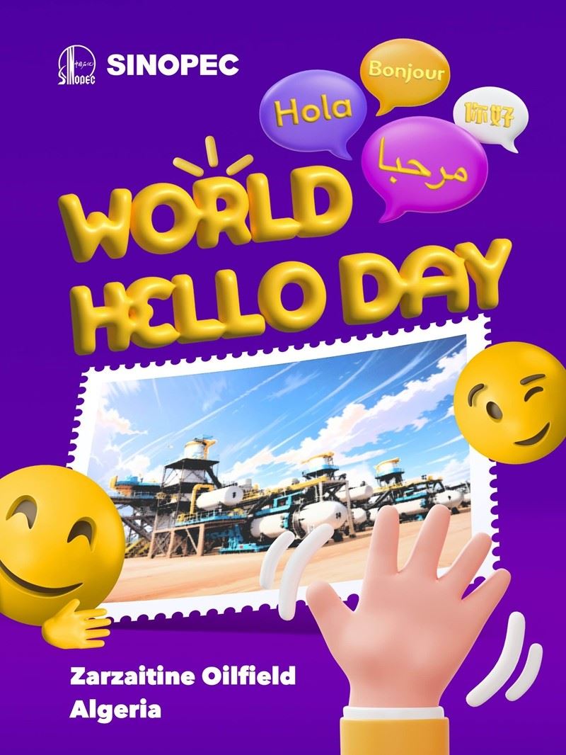 Today is the #WorldHelloDay, a day dedicated to spreading warm greetings to the world. In Ecuador, Sinopec's drilling rig greets with a cheerful "¡Hola!". In Saudi Arabia and Algeria, the equipment and facilities of YASREF and Zarzaitine Oilfield extend their welcomes with "مرحبا!" and "Bonjour!" respectively. In Tianjin, the Intelligent Inspection Robot at Sinopec LNG Terminal shares a friendly "你好!"(Ni Hao, Hello). On this occasion, we invite you to explore the posters showcasing heartfelt greetings from Sinopec to the global community. Let's celebrate unity and connection through the power of words on this special day.