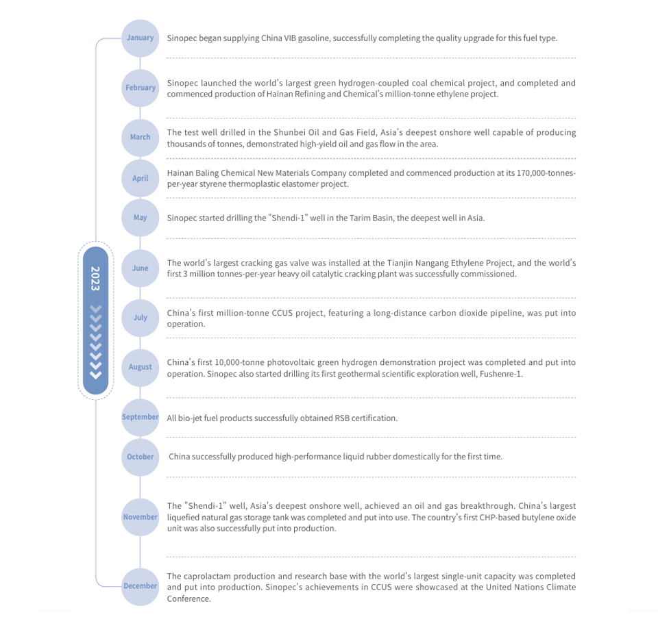 Sinopec has assumed the responsibility of leading industry development, focusing on building an industrial framework centered on energy resources, supported by clean oil products and modern chemicals as its two wings, and new energy, new materials, and new economy as key growth poles. The Company has made every effort to expand its resource base, discover new untapped reserves, secure more mining rights, and implement new natural gas reserves and production projects. In addition, we have accelerated the transformation and upgrading of our refining and chemical operations while developing world-class refining and chemical production bases. Through the Company's whole industry chain in oil and gas exploration and development, refining production and operations, chemical production and operations, product marketing and services, international operations, and petroleum refining and chemical engineering technology services, Sinopec provides diversified and comprehensive support to enhance the public's quality of life.