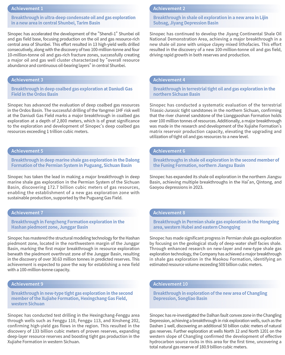 Sinopec's Top Ten Oil and Gas Exploration Discoveries