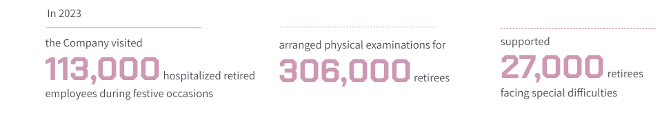 Sinopec has been diligent in supporting and managing its retired employees by offering targeted, personalized, and family-centered services. Through its "Respect for the Elderly" initiative, the Company has fostered a culture of care and appreciation for its senior members. We have conducted visits and offered support to retired employees, providing health check-ups and assistance to those in need. We have also actively collaborated with local community and subdistrict Party organizations to promote Party-building activities.