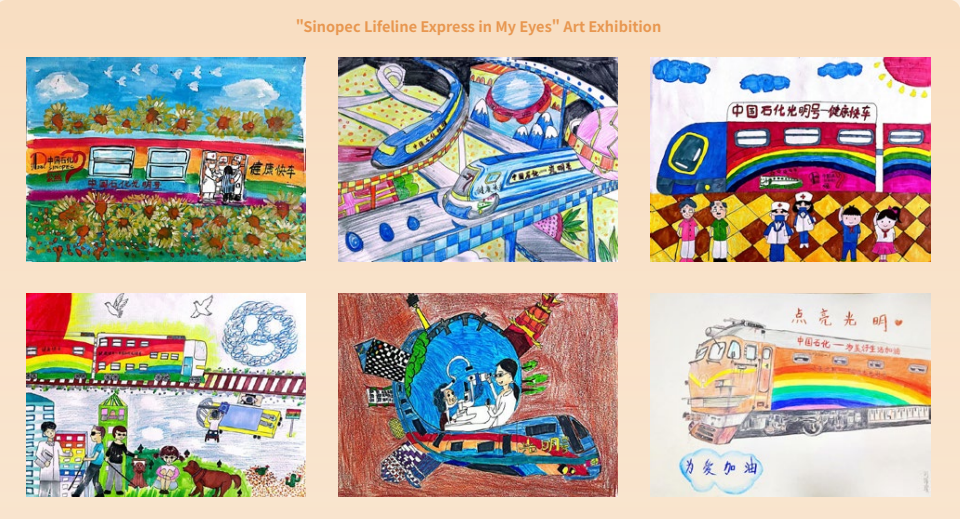 In July 2023, students from the Second Primary School of Korla City, Bayingolin, Xinjiang, visited the Sinopec Lifeline Express. After the visit, they picked up their brushes and expressed their artistic talents by creating paintings titled "The Lifeline Express in My Eyes".