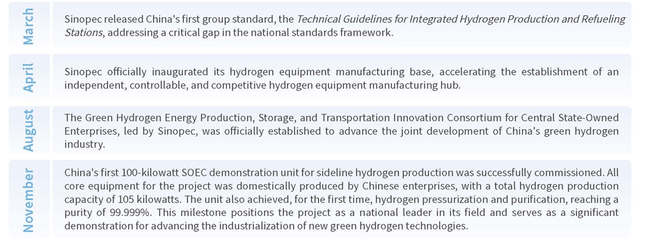 Following an integrated strategy of "science and technology-driven support, industry-led growth, coordinated financing, and open collaboration", Sinopec has actively advanced the development of a modern industry chain for hydrogen energy application. At the foundational level, Sinopec has conducted research on industry planning and deployment, actively promoted the development of a data platform for the modern hydrogen energy industry chain, and successfully hosted several major industry events, including the High-Quality Development Promotion Conference for Modern Industrial Chain of Hydrogen Energy Application and the inaugural meeting of the Expert Consultation Committee. In terms of joint ventures and partnerships, Sinopec has signed hydrogen energy cooperation agreements with universities, enterprises, and government bodies at the district, municipal, and provincial levels. It has also supported local governments in formulating plans for developing the hydrogen energy industry and deepened mutually beneficial partnerships with several international energy companies. On the domestic application side, Sinopec has achieved key technological breakthroughs in equipment manufacturing, driven by the development of large-scale green hydrogen production projects and hydrogen refueling stations in Kuqa, Xinjiang, and Ordos, Inner Mongolia.