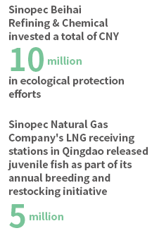 Furthermore, Sinopec has actively promoted a broad range of ecological protection and restoration efforts. Over the past year, the Company completed afforestation projects covering more than 57 hectares in the mountainous regions north and south of Lhasa, carried out sand fixation and greening initiatives across nearly 3.5 million square meters in northeastern, northern, and northwestern China, and implemented more than 20,000 square meters of well site greening in the southwest. Throughout the year, Sinopec developed 1.794 million square meters of greenbelts and planted 1.672 million trees to fulfill statutory tree-planting obligations, contributing an estimated 201,000 metric tons of carbon credits. By the end of 2024, Sinopec subsidiaries had established a cumulative greenbelt area of 12,400 hectares, with a greening coverage rate of 35.11% across all company-managed properties. In addition, the Company has continued to actively pursue ecological damage compensation, species propagation, and the release of native species to support the long-term restoration of marine ecosystems and fishery resources.