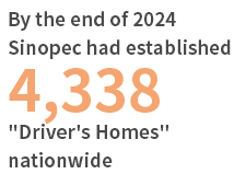 Harnessing the reach of its energy service station network, Sinopec has made all-out efforts to advance its "Driver's Home" program, continuing to expand service coverage and enhance its support system to meet the urgent needs of workers engaging in new business forms, providing them with a "home on the road". Service quality has steadily improved through the implementation of the “2+7+X” standard: In addition to basic services like refueling and shopping, drivers now have access to seven core services, including parking, rest areas, dining options, drinking water, showers, laundry, and clothes drying, supplemented by additional services such as roadside assistance. Sinopec has also innovated the program's operational model, introducing a series of heartwarming features such as "Diesel (LNG) Refueling and Free Warm Meals" and "Self-Serve Cooking Stations". By the end of 2024, Sinopec had established 4,338 "Driver's Homes" nationwide, offering year-round comfort and convenience for truck drivers. By focusing on their practical needs and continually improving service offerings, Sinopec has helped truck drivers stay safer on the road and enjoy greater peace of mind during their journeys.